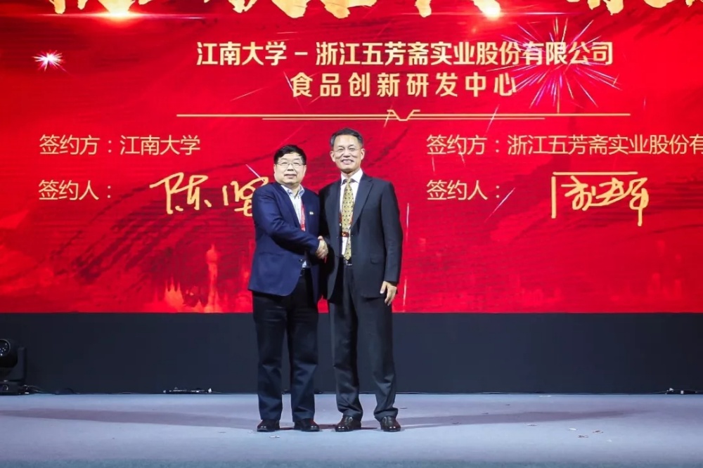 值得(de)一提的是(shi),中(zhong)國工程院(yuan)(yuan)院(yuan)(yuan)士(shi)(shi)、江南大(da)學(xue)校(xiao)長陳(chen)堅(jian)院(yuan)(yuan)士(shi)(shi)親臨(lin)會議現(xian)場,陳(chen)堅(jian)院(yuan)(yuan)士(shi)(shi)從行業(ye)及技(ji)術維度分析五(wu)(wu)芳(fang)(fang)齋進軍糯米(mi)食(shi)品領域的新機會,并對江南大(da)學(xue)-五(wu)(wu)芳(fang)(fang)齋食(shi)品創新研發中(zhong)心(xin)給予了充分的肯定(ding)。陳(chen)堅(jian)院(yuan)(yuan)士(shi)(shi)表示,校(xiao)企合作必(bi)將加快科研成果落地轉化步伐 ,助力五(wu)(wu)芳(fang)(fang)齋早日實(shi)現(xian)百年百億(yi)的夢想。