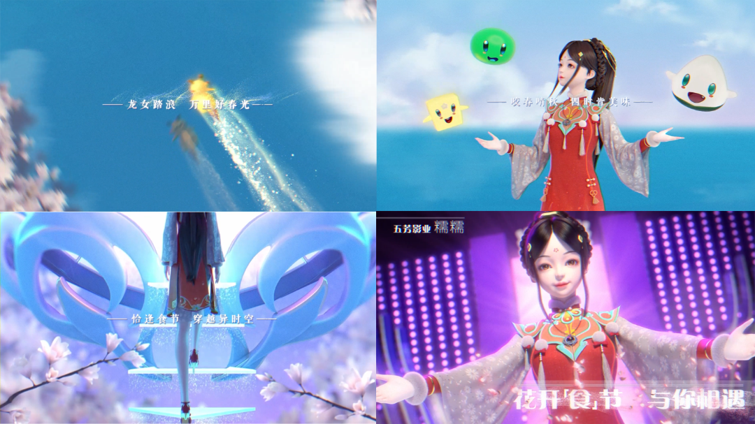 在(zai)品(pin)牌最(zui)新發布的(de)五糯糯出(chu)道片中,小金龍飛(fei)躍繁花盛(sheng)開的(de)水面之上,花風起晴(qing)浪,一派好春光(guang),在(zai)云端變(bian)身(shen)甜美少女。